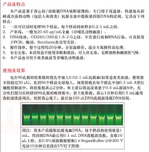 產(chǎn)品名稱:96 孔板血液 DNAout( 真空法 )